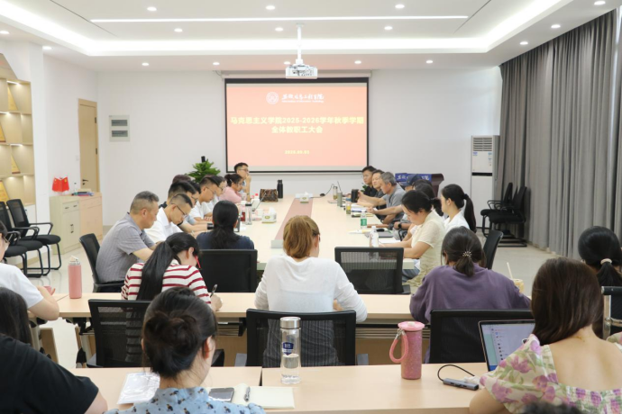 为明确新学期工作方向、凝聚教学科研合力,9月3日下午,马克思主义学院在A1N502会议室召开2025—2026学年秋季学期全体教职工大会。会议由马克思主义学院常务副院长胡安全主持,全体教职工参加会议。(图为会议现场)会议伊始,胡安全回顾暑期重点工作,从思政教师暑期培训、“三下乡”暑期社会实践团队指导、安徽省第七届青年教师教学竞赛,到完成教育部思政课教师信息库录入、中高级职称晋升摸排,系统梳理了暑期工作成效,为新学期工作奠定基础。随后,胡安全对新学期工作提出明确要求。教学方面,需扎实开展期初教学检查,全体思政教师需全力保障每节课教学质量,抓好课堂考勤、秩序与座位管理;科研方面,要积极推进科研项目申报;教研方面,各课程组需制定新学期教研活动计划,针对性开展新教师磨课工作;此外,还需重点筹备第五届长三角民办高校教师教学竞赛、第四届大学生讲思政课评选展示活动与马克思主义理论成果大赛,以赛促教、以赛育人。(图为胡安全做工作要求)校级督导汪一江结合新学期听课情况,对第一周教师上课情况给予了充分肯定,