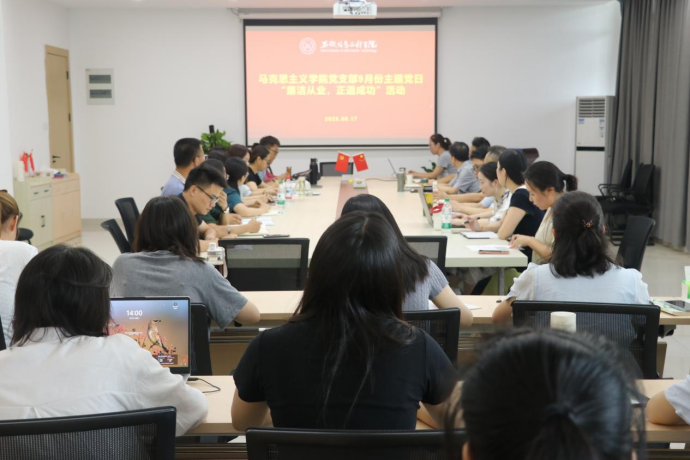 为持续深化全面从严治党要求,切实增强教职工党员廉洁自律意识与拒腐防变能力,9月17日下午,马克思主义学院党支部在A1N502会议室组织全体教职工党员开展“廉洁从业,正道成功”主题党日活动。(图为主题党日活动现场)活动伊始,全体教职工党员集中观看“廉洁从业,正道成功”主题培训视频。视频以“案例警示+制度解读+法律普及”为核心,通过真实违纪案例剖析、廉洁规章制度系统讲解、相关法律法规要点解读,辅以违纪人员真人忏悔语录,直观呈现廉洁失守的严重后果,深刻阐明廉洁从业的重要意义,引导教职工党员在日常工作与生活中时刻绷紧廉洁之弦,自觉坚守纪律底线,筑牢思想防线。(图为全体教职工党员观看廉洁从业培训视频)此次主题党日活动主题鲜明、内容务实,既强化了教职工党员的纪律意识和规矩意识,又为学院持续推进清廉校园建设、营造风清气正的育人氛围奠定了坚实基础。全体教职工党员一致表示,将以此次学习为契机,把廉洁理念融入思政课教育教学全过程,严守师德师风,自觉抵制不良风气,以清正廉洁的言行涵养优良育人环境,用实际行动践