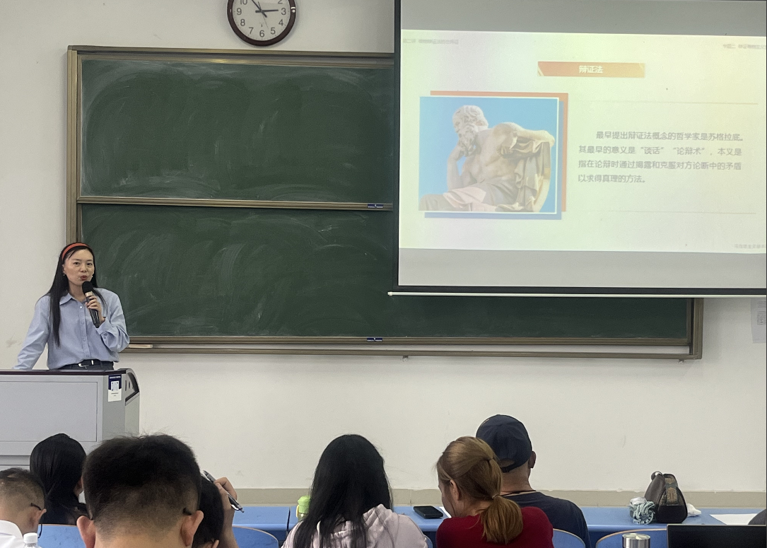 9月17日下午,马克思主义学院马克思主义基本原理课程组在A1N406召开2025—2026学年秋季学期第一次教学研讨会。会议由课程组负责人韩燕玉老师主持,全体任课教师参加。本次会议围绕教学磨课、前期工作总结及实践研学方案等多项议题展开深入交流与讨论,意在推进新学期教学工作的有序开展。会议伊始,李林老师进行了磨课展示,围绕“物质多样性与物质统一性”内容,以“理论讲解+案例互动”的方式,呈现了一节较为生动的原理课教学片段。在场教师就教学方法、课堂设计和师生互动等方面展开了积极评议,共同探讨如何进一步提升教学效果,增强课堂吸引力,营造更优质的学习氛围。(图为李林老师进行磨课)随后,会议进入第二阶段,各位教师就开学前两周的教学情况进行了总结与交流。大家反馈交流了学生出勤率、课堂参与度及知识衔接和难点理解方面的共性问题。针对这些问题,课程组集体商讨了优化教学策略的办法,包括调整授课节奏、增加典型例题分析、利用线上平台辅助答疑等,力求实现因材施教,帮助学生更好地掌握课程内容。最后,会议重点讨论了课外