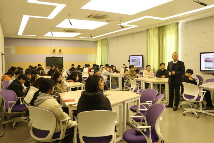 为深入推进《马克思主义基本原理》课程教学改革,提升思政课教学实效性与吸引力,11月26日,学院特邀安徽工程大学马克思主义学院张刚教授,以“《马克思主义基本原理》‘两个结合’教学创新:经验、成效与范式”为主题,为原理课程组全体教师带来了一场富有启发的教学盛宴。(图为张刚教授)讲座伊始,张刚教授便直指当前高校原理课教学中普遍存在的“痛点”。他通过生动的调查数据与课堂现象,深刻剖析了导致学生“前排率低、抬头率低、点头率低”这“三低”问题的深层原因,包括理论与现实联系不紧密、中华优秀传统文化融入“浅层化”、师生互动不足等。面对这些挑战,破局的关键在于深入贯彻落实习近平总书记提出的“将马克思主义基本原理同中国具体实际相结合、同中华优秀传统文化相结合”的重要原则。“两个结合”是让思政课成为一门“有温度的课”的重要实践路径。(图为报告现场)在分享创新经验时,张刚教授系统介绍了一系列经过实践检验的教学范式。其中,“破-承-立-启”课堂教学模式令人印象深刻。该模式通过“反向破题-文化承脉-理论立论-实践启